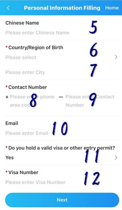 9 中国に到着した際のフライトNoをご記入下さい。香港やマカオなどから陸路入国の場合は記入不要です。